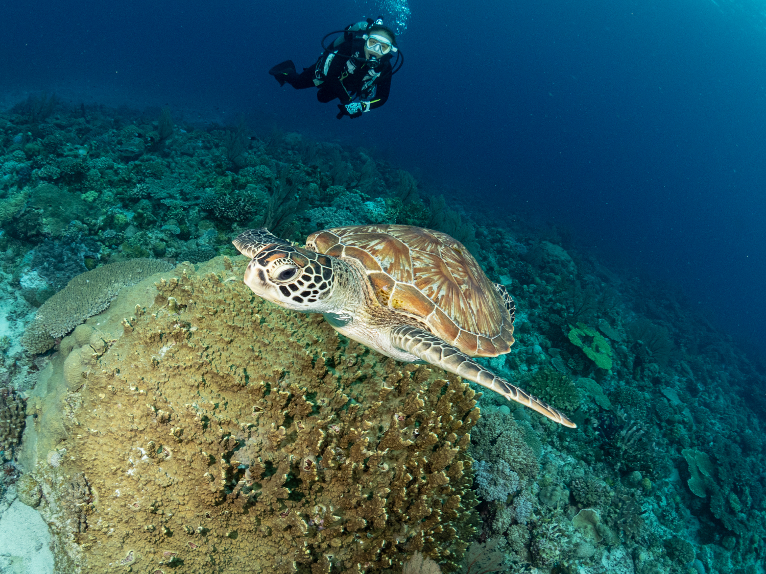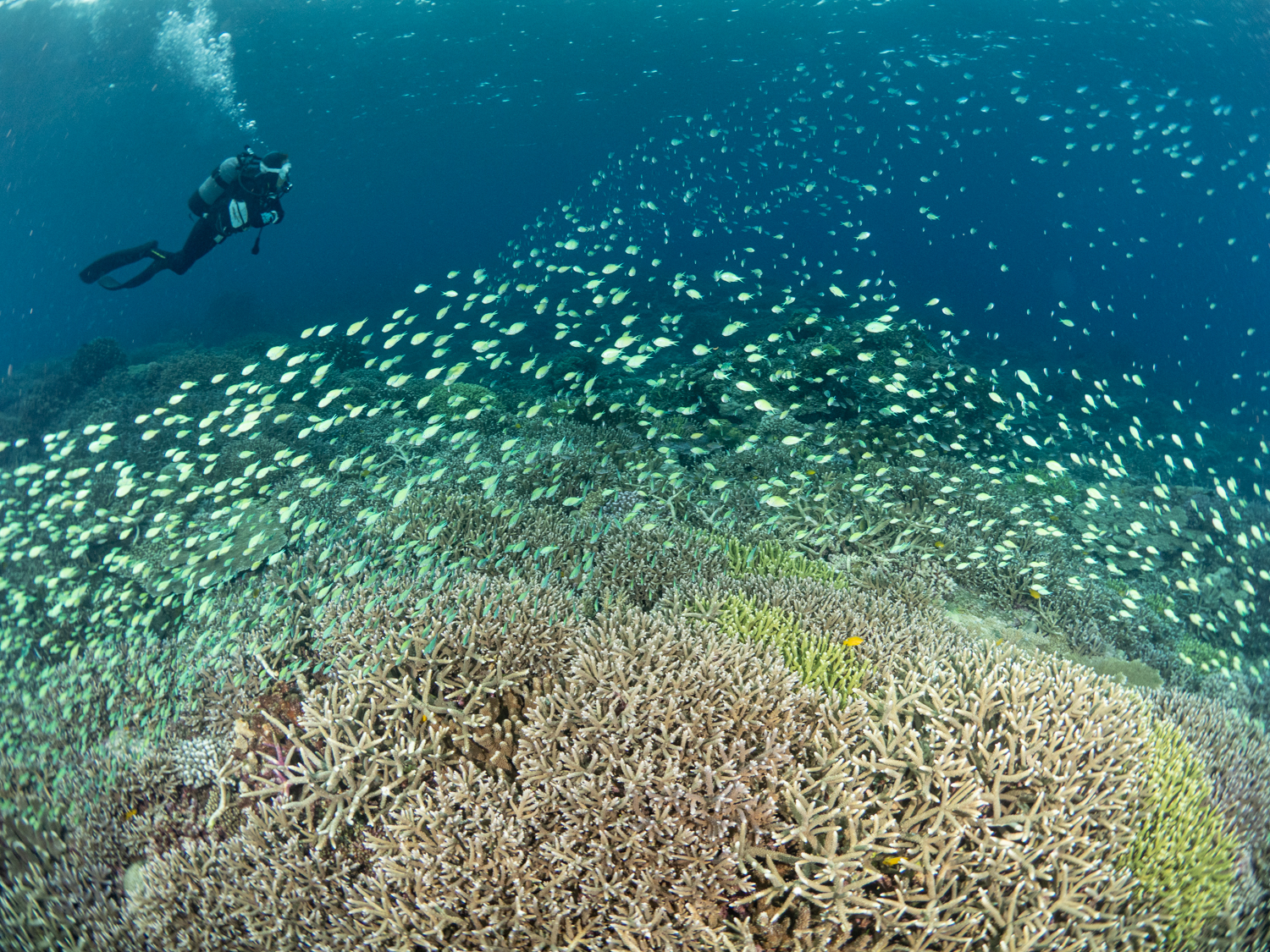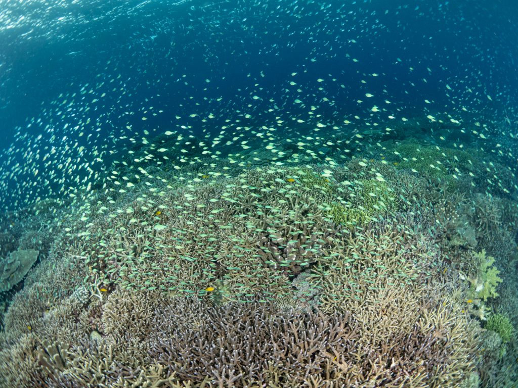 まずはサンゴ天国なクエフから!残念ながら入った時は曇り空で水中暗かったけど相変わらずはデバスズメでした👏
